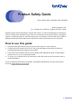 Product Safety Guide DCP-J1200W / MFC-J4340DW / MFC-J4540DW Brother Industries, Ltd. 15-1, Naeshiro-cho, Mizuho-ku, Nagoya 467-8561, Japan Read this guide before attempting to operate the product, or before attempting any maintenance. Failure to follow these instructions may result in an increased risk of personal injury or damage to property, including through fire, electrical shock, burns or suffocation.