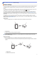 3. Wireless network machine (your Brother machine) • When the Brother machine is connected to the wireless access point/router using a network cable (supported models only): 1 2 4 3 1. Mobile device 2. Wireless access point/router 3. Network cable 4. Wired or wireless network machine (your Brother machine) Wi-Fi Direct® network Connect your mobile device to your Brother machine using Wi-Fi Direct®.