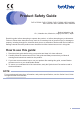 (EU only) Product Safety Guide DCP-J572DW / DCP-J772DW / DCP-J774DW / MFC-J491DW / MFC-J497DW / MFC-J890DW / MFC-J895DW Brother Industries, Ltd. 15-1, Naeshiro-cho, Mizuho-ku, Nagoya 467-8561, Japan Read this guide before attempting to operate the product, or before attempting any maintenance. Failure to follow these instructions may result in an increased risk of personal injury or damage to property, including through fire, electrical shock, burns or suffocation.