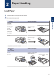 2 Paper Handling Load Paper 1 Load the paper in the paper tray as follows. Fan the stack of paper well. 2 How to Load Paper A4/Letter Executive B5/B6 (JIS) 1 A5/A6 Printing surface: Face down Adjust the paper guides. Photo 2L Index card Envelopes Photo Printing surface: Face down Adjust the paper guides. 1 Supported only in some countries. Photo Paper Tray (DCP-J572DW) How to Load Paper Photo Slide the whole output paper tray cover.