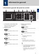 1 Información general Información general del panel de control 1 2 3 4 5 6 8 1 Información general 7 1. 1,8" Pantalla de cristal líquido (LCD) Muestra mensajes para ayudarlo a configurar y a usar el equipo. 3. Botones con funciones de configuración Clear/Back 2. Botones de modo FAX Pulse este botón para volver al nivel de menú anterior. Pulse para cambiar el equipo al modo Fax. Settings Pulse para acceder al menú principal. SCAN Pulse para cambiar el equipo al modo Escáner.