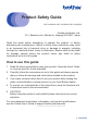 Product Safety Guide MFC-J2340DW / MFC-J3540DW / MFC-J3940DW Brother Industries, Ltd. 15-1, Naeshiro-cho, Mizuho-ku, Nagoya 467-8561, Japan Read this guide before attempting to operate the product, or before attempting any maintenance. Failure to follow these instructions may result in an increased risk of personal injury or damage to property, including through fire, electrical shock, burns or suffocation.