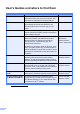 Network Difficulties Difficulty Suggestions Cannot print over the network. Make sure that your machine is powered on and is online and in the Ready mode. Print a Network Configuration Report (see Online User’s Guide) and check the current Network settings printed in this list. Reconnect the LAN cable to the hub to verify that the cabling and network connections are good. If you are using a wireless connection or are having network problems, see Online User’s Guide.