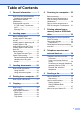 Table of Contents 1 General information............ 1 How to use the documentation ....... 1 Symbols and conventions ............ 1 About Brother Utilities (Windows®)..................................... 1 Control panel overview ................... 2 3.7"(93.4 mm) Touchscreen LCD.............................................. 4 Entering Text ............................... 8 2 4 Printing from a computer.... 27 How to print a document ............... 27 5 7 Copying..............................