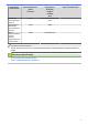 Käytettävissä olevat palvelut Picasa Web Albums™ Google Drive™ Flickr® Evernote® Facebook Dropbox Brother CreativeCenter OneDrive Box Skannattujen kuvien lataaminen palveluun JPEG JPEG/PDF/DOCX/XLSX/ PPTX - Tietovälineeseen tallennettujen kuvien lataaminen palveluun JPEG JPEG - Faksien edelleenlähettämin en onlinepalveluun JPEG PDF/JPEG /TIFF - (käytettävissä vain joissain maissa) (Hong Kong, Taiwan ja Korea) Brother Web Connect tukee vain englanninkielisiä tiedostoja.
