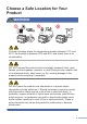 Choose a Safe Location for Your Product WARNING Choose a location where the temperature remains between 10°C and 35°C, the humidity is between 20% and 80%, and where there is no condensation. DO NOT expose the product to direct sunlight, excessive heat, open flames, corrosive gasses, moisture, or dust. Doing so may create a risk of an electrical shock, short circuit, or fire, causing damage to the product and/or rendering it inoperable.