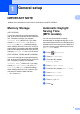 Table of Contents 1 General setup 1 IMPORTANT NOTE...............................................................................................1 Memory Storage ....................................................................................................1 Automatic Daylight Saving Time (MFC models) ....................................................1 Sleep Mode ...........................................................................................................