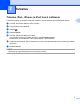 2 Tulostus Tulostus iPad-, iPhone- ja iPod touch -laitteesta 2 Tulostustoimenpide voi vaihdella sovelluksen mukaan. Seuraavassa esimerkissä käytetään Safaria. a b c d e Varmista, että Brother-laitteesi virta on kytketty. f Valitse halutut asetukset, kuten tulostettavien sivujen lukumäärä tai kaksipuolinen tulostus (jos laitteesi tukee sitä). g Kosketa Tulosta. Avaa tulostettava sivu Safarilla. Kosketa . Kosketa Tulosta. Varmista, että Brother-laitteesi on valittu.