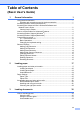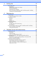 Table of Contents (Basic User’s Guide) 1 General information 1 Using the documentation .......................................................................................1 Symbols and conventions used in the documentation ....................................1 Accessing Brother Utilities (Windows® 8) .............................................................1 Accessing the Advanced User’s Guide and Software and Network User’s Guide....................................................................