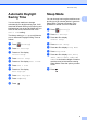 General setup Automatic Daylight Saving Time You can set the machine to change automatically for daylight saving time. It will reset itself forward one hour in the Spring and backward one hour in the Fall. Make sure you have set the correct date and time in the Date & Time setting. The factory setting is Off, so you will have to turn on Automatic Daylight Saving Time as follows. a Press b c Press All Settings. (Settings). Press a or b to display Initial Setup. d e f g Press Initial Setup.