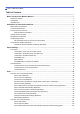 Home > Table of Contents Table of Contents Before You Use Your Brother Machine ............................................................................................... 1 Definitions of Notes ........................................................................................................................................ 2 Trademarks ....................................................................................................................................................