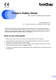 (EU only) Product Safety Guide 1 MFC-J2330DW/J2730DW/J3530DW/J3930DW Brother Industries, Ltd. 15-1, Naeshiro-cho, Mizuho-ku, Nagoya 467-8561, Japan Please read this booklet before attempting to operate the product, or before attempting any maintenance. Failure to follow these instructions may result in an increased risk of fire, electrical shock, burns or suffocation. Brother shall not be liable for damage caused where the product owner has failed to follow instructions set out in this guide.