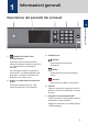 1 Informazioni generali Descrizione del pannello dei comandi 1 2 3 4 5 1 Informazioni generali 6 1. Simbolo NFC (Near Field Communication) 3. Pulsanti menu (Indietro) È possibile usare l'autenticazione di scheda mettendo a contatto la scheda IC con il simbolo NFC sul pannello di controllo. Premere per tornare al menu precedente. Se il dispositivo Android™ supporta la funzione NFC, è possibile stampare dal dispositivo o acquisire i documenti sul dispositivo allo stesso modo.
