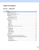 Table of Contents Section I 1 Printing Windows® 2 Using the Brother printer driver..................................................................................................................2 Features ....................................................................................................................................................2 Choosing the right type of paper................................................................................................................