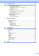 Table of Contents (ADVANCED USER’S GUIDE) The Advanced User's Guide explains the following features and operations. You can view the Advanced User's Guide on the Documentation CD-ROM. 1 General setup 8 Memory storage Automatic Daylight Saving Time Sleep Mode LCD display Mode Timer 2 3 PhotoCapture Center™ operations Print Images PhotoCapture Center™ print settings Scan to a memory card or USB Flash memory drive Security features Secure Function Lock 2.