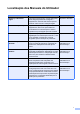 Apresentação de animações de erro Não Não Não Não Efectue um dos seguintes procedimentos: Prima Parar. B Introduza o número de fax para o qual os faxes serão encaminhados. g pode limparXX pode iniciarXX pod imprimirXX pod DigitalzXX Pode transferir os faxes da memória do equipamento para o computador. Pode também transferir o relatório de Histórico de faxes para ver se há alguns faxes que precise de transferir.