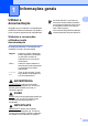 1 Informações gerais Utilizar a documentação 1 Obrigado por ter comprado um equipamento da Brother! Esta documentação vai ajudá-lo a tirar o máximo partido do seu equipamento. Símbolos e convenções utilizados nesta documentação 1 1 As Notas indicam o que fazer se ocorrerem determinadas situações ou oferecem sugestões sobre como a operação funciona em conjunto com outras funções. Os ícones de Perigo Eléctrico alertamno para possíveis choques eléctricos.
