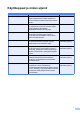 Vianetsintä Skannausongelmat (Jatkuu) Ongelma Ehdotetut toimenpiteet Tekstintunnistus ei toimi. Yritä parantaa skannauksen erottelukykyä. (Macintosh-käyttäjät) Presto! PageManager on ladattava ja asennettava ennen käyttöä. Lisätietoja on kohdassa Brotherin tekninen tuki (Macintosh) sivulla 3. Ohjelmisto-ongelmat Ongelma Ehdotetut toimenpiteet Ohjelmiston asennus tai siitä tulostus ei onnistu. (Vain Windows®-käyttäjät) Suorita Korjaa MFL-Pro Suite -ohjelma CD-ROM-asennuslevyltä.