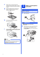 f 3 Säädä paperin sivuohjaimia paperikoon mukaan varovasti molemmin käsin. Varmista, että paperin sivuohjaimet koskettavat paperin reunoja. g Sulje luovutusalustan kansi. Tarkista, että paperi on kasetissa tasaisesti ja paperin ylärajamerkin a alapuolella. h TÄRKEÄÄ ÄLÄ kytke vielä USB-kaapelia (jos USBkaapeli on käytössä). a 1 Sähkö- ja puhelinjohdon kytkeminen Kytke sähköjohto. Työnnä paperikasetti hitaasti takaisin kokonaan laitteeseen. VAROITUS Laite on kytkettävä maadoitettuun pistorasiaan.