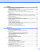 Раздел I ® Windows Печатане Сканиране ControlCenter4 Отдалечено конфигуриране Софтуер за PC-ФАКС на Brother PhotoCapture Center™ Настройки на защитната стена (За мрежови потребители) 2 35 56 87 89 108 111