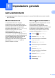 1 Impostazione generale 1 NOTA IMPORTANTE La maggior parte delle illustrazioni contenute in questa Guida dell'utente mostra il modello MFC-J6720DW. Memorizzazione Ora legale automatica Le impostazioni dei menu vengono memorizzate in modo permanente e non andranno perse nemmeno nell'eventualità di interruzioni di corrente. Le impostazioni provvisorie (ad esempio, il Modo Overseas) andranno invece perse. Se è stata selezionata l'opzione Imp. nuovo pred.