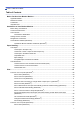 Home > Table of Contents Table of Contents Before You Use Your Brother Machine ............................................................................................... 1 Applicable Models .......................................................................................................................................... 2 Definitions of Notes ........................................................................................................................................ 3 Trademarks ....