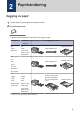 Oversikt over LCDpekeskjermen • Tre snarveisfaner er tilgjengelige med seks snarveier på hver fane. Du kan bytte startskjermer ved å sveipe mot venstre eller høyre eller ved å trykke på d eller c. Fra startskjermene har du tilgang til skjermbilder for snarveier, Wi-Fi®-oppsett, innstillinger og blekknivåer. Hjemmeskjerm 1 • Trykk 2 nederst på skjermen for å få tilgang til hjemmeskjermbildene. 4.