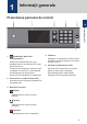 1 Informaţii generale Prezentarea panoului de control 1 2 3 4 5 1 Informaţii generale 6 1. Simbol NFC (Near Field Communication) Puteţi utiliza autentificarea prin card atingând cardul IC de simbolul NFC de pe panoul de control. În cazul în care dispozitivul Android™ este compatibil cu funcţia NFC, puteţi imprima de pe dispozitiv sau puteţi scana documente către dispozitiv în acelaşi mod. 4.