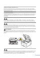 DO NOT use this product during a thunderstorm. There may be a remote risk of an electrical shock from lightning. DO NOT put toner cartridges, a toner cartridge and drum unit assembly, or a waste toner box into a fire or places susceptible to fire. It could explode, resulting in injuries. FIRE HAZARDS Failure to follow the warnings in this section may create the risk of a fire.