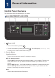 1 General Information Control Panel Overview The control panel may vary depending on your model. HL-L3290CDW/DCP-L3551CDW 1 1. 2 3 4 5 6 Power On/Off • Turn on the machine by pressing . • Turn off the machine by pressing and holding . The LCD displays [Shutting Down] and stays on for a few seconds before turning off. 2. Function Buttons Copy/Scan Options Press to access temporary settings for scanning or copying.
