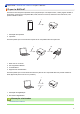 2. Ponto de acesso/roteador sem fios 3. Equipamento de rede sem fio (seu equipamento Brother) • Quando o equipamento Brother estiver conectado ao ponto de acesso/roteador sem fio usando um cabo de rede (somente os modelos suportados): 1 2 4 3 1. Dispositivo móvel 2. Ponto de acesso/roteador sem fios 3. Cabo de rede 4. Equipamento de rede com fio ou sem fio (seu equipamento Brother) Rede Wi-Fi Direct® Conecte seu dispositivo móvel ao equipamento Brother usando o Wi-Fi Direct®.