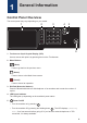 1 General Information Control Panel Overview The control panel may vary depending on your model. 1 2 3 4 5 6 1. Touchscreen Liquid Crystal Display (LCD) Access menus and options by pressing them on the Touchscreen. 2. Menu Buttons (Back) Press to go back to the previous menu. (Home) Press to return to the Main Home screen. (Cancel) Press to cancel an operation. 3. Dial Pad (Numerical buttons) Press the Numerical buttons to dial telephone or fax numbers and to enter the number of copies. 4.
