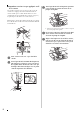 h Alignez le fil supérieur et le fil de la canette, puis passez-les sous le pied-de-biche vers l’arrière de la machine. i Mettez la machine sous tension. j Sélectionnez un point. m Tout en maintenant légèrement les fils à l’arrière de la machine, tournez le volant pour refaire passer l’aiguille dans le trou percé, puis abaissez le levier du pied-de-biche. n Sélectionnez une vitesse lente, maintenez doucement les fils derrière le pied de biche et commencez à coudre.