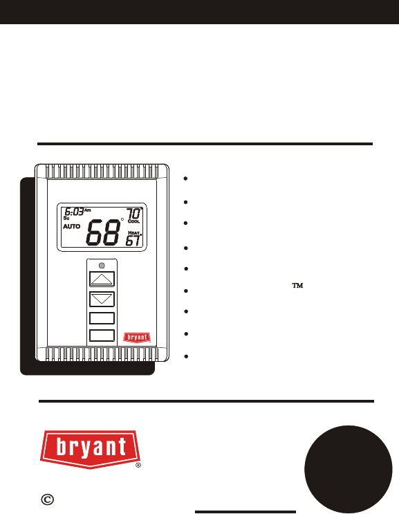 OWNER'S MANUAL TSTATBBPRF01-B Wireless Programmable Digital Thermostat MODE FAN Wireless Operation 7-Day Programmable 4 Time Periods Per Day Programmable Fan Easy To Read Display Thermoglow Backlight Auto Changeover Dual Setpoint 2 Heat, 2 Cool Stages Wireless 2000 by Replacement Components Division Carrier Corporation 2 Stage Heat & Cool or Heat Pump