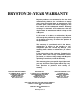 BRYSTON 20 -YEAR WARRANTY Bryston products are warranted to be free from manufacturing defects for a minimum of twenty years from the original date of manufacture. This includes parts, labour and return shipping to the first owner and all subsequent owners. Warranty coverage is automatic and commences with the original date of manufacture which is kept on file at Bryston.