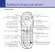 In this guide Getting started Location . . . . . . . . . . . . . . . . . . . . . . . 6 Setting up the base and handset . . . . . 6 Dial a phonebook entry . . . . . . . . . . . 20 Delete a phonebook entry . . . . . . . . . 20 Edit a phonebook entry . . . . . . . . . . . . 21 Getting to know your phone Handset buttons . . . . . . . . . . . . . . . . . 10 Sample screen . . . . . . . . . . . . . . . . . . . 11 Base buttons and LEDs . . . . . . . . . . . . 12 Navigating the menus . . . . . . . . . . . . .