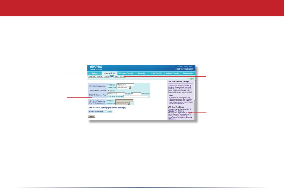 ThemenusintheCongurationToolletyouchangeyourAirStation’ssettings.To