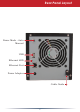 Front Panel Layout Power Switch Power LED Disk LEDs (Green-Access Red-Error) Function Button Function LED USB Note: The LinkStation’s front panel is removable by pulling it straight forward. Do not lift the unit by its front panel. It may come off suddenly, allowing the unit to fall.