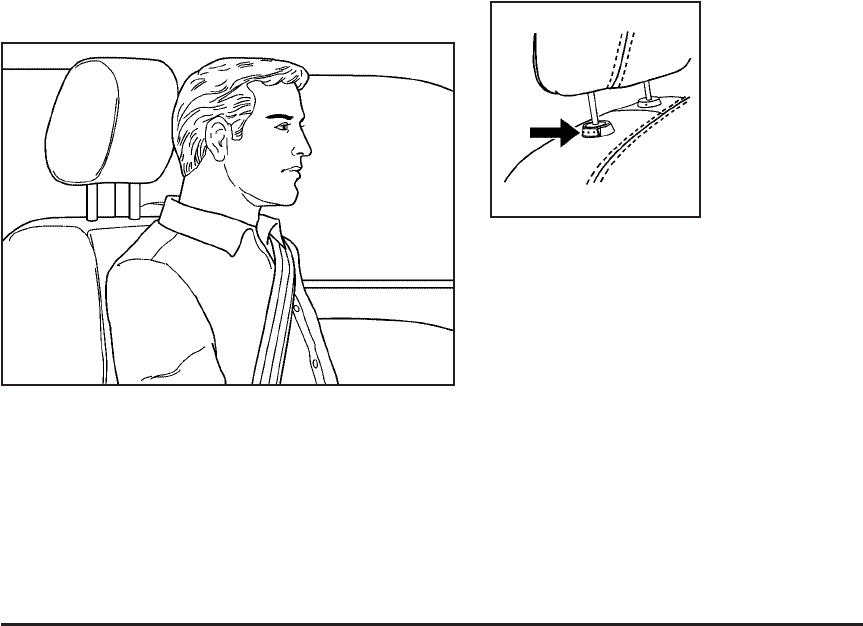 To lower the head restraint, press the button,