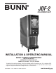 JDF-2 S/N JDF0005473 & UP INSTALLATION & OPERATING MANUAL BUNN-O-MATIC CORPORATION POST OFFICE BOX 3227 SPRINGFIELD, ILLINOIS 62708-3227 PHONE: (217) 529-6601 FAX: (217) 529-6644 To obtain the Illustrated Parts Catalog, visit the Bunn-O-Matic website, at www.bunn.com. This is absolutely FREE, and the quickest way to obtain the catalog. Contact Buun-O-Matic Corporation at 1-800-286-6070 to obtain a paper copy of the required Illustrated Parts Catalog mailed via U.S. Postal Service. 38310.