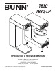 TB3Q TB3Q-LP OPERATING & SERVICE MANUAL BUNN-O-MATIC CORPORATION POST OFFICE BOX 3227 SPRINGFIELD, ILLINOIS 62708-3227 PHONE: (217) 529-6601 FAX: (217) 529-6644 37236.0000C 05/05 ©2004 Bunn-O-Matic Corporation www.bunnomatic.