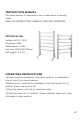 INSTRUCTION MANUAL This towel warmer is intended for use in bathrooms or laundry areas. READ THE INSTRUCTIONS CAREFULLY BEFRORE OPERATING SPECIFICATION Voltage: AC110-120V Frequency:60Hz Rated power: 100W Unit size: 900*530*355mm Unit weight: 4.2 lbs OPERATING INSTRUCTIONS 1)Please read the installation instruction carefully to understand how to install your towel warmer. 2)Make sure to complete the installation.