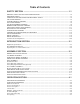 Table of Contents SAFETY SECTION ........................................................................................ 1-1 GENERAL SAFETY INSTRUCTIONS AND PRACTICES .................................................................................1-2 OPERATOR SAFETY ........................................................................................................................................1-3 CONNECTION OR DISCONNECTING IMPLEMENT SAFETY ..........................................................