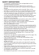 SAFETY INSTRUCTIONS • • • • • • • • • • • • • • • • • • The generator is designed to give safe and dependable service if operated according to instructions.. Read and understand the Owner’s Manual before operating the generator. Failure to do so could result in personal injury or equipment damage. Exhaust gas contains poisonous carton monoxide. Never run the generator in an enclosed area. Be sure to provide adequate ventilation.