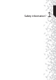 Contents 1 7 Safety information Safety information 2 3 4 6 Troubleshooting 38-39 Error Signals 40 Getting to know your washing machine Technical Specifications 41 Help and assistance 42 Ready? Let’s begin 10 Disposal 43 Accessories 12 Guarantee 44 Installing your washing machine Installation requirements 14 Unpacking 14 Connections (electrical, water, gas) 15 Functions Functions 5 6 Product support 18 Using your washing machine First use of 30 Standar