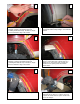 pulling red vinyl backing free as you continue to work your way around the top edge