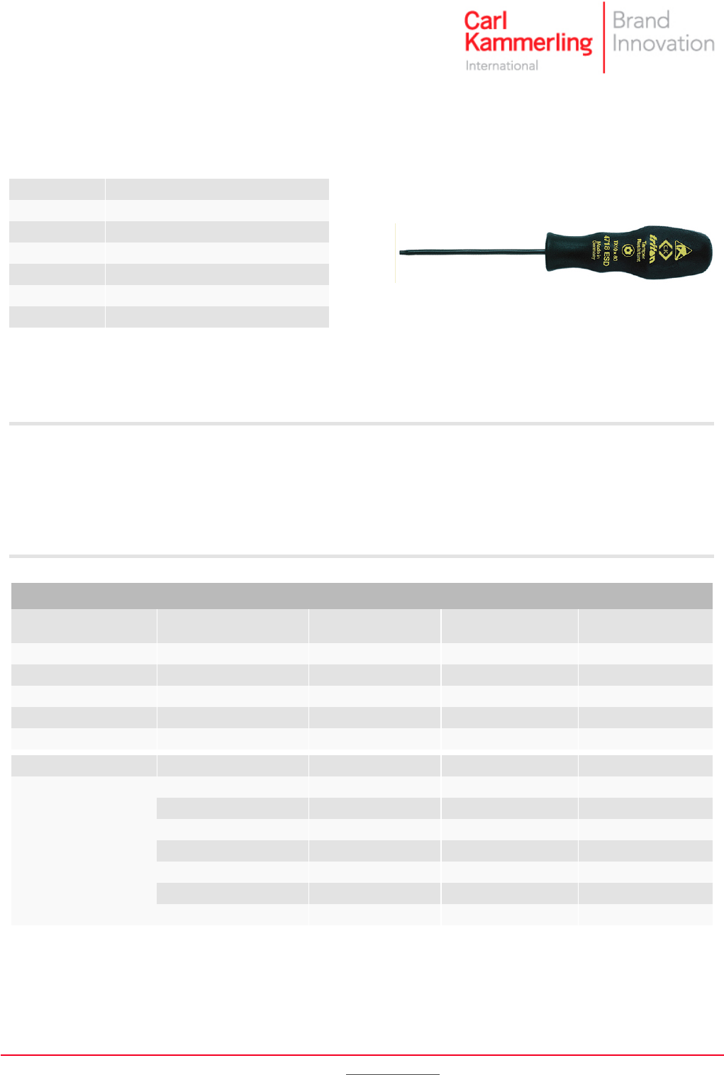 According to IEC 61340 5.1 & 5.2 ~ Size: TX 15 ~ Visible blade length: 300 mm ~ Overall length: 390 mm