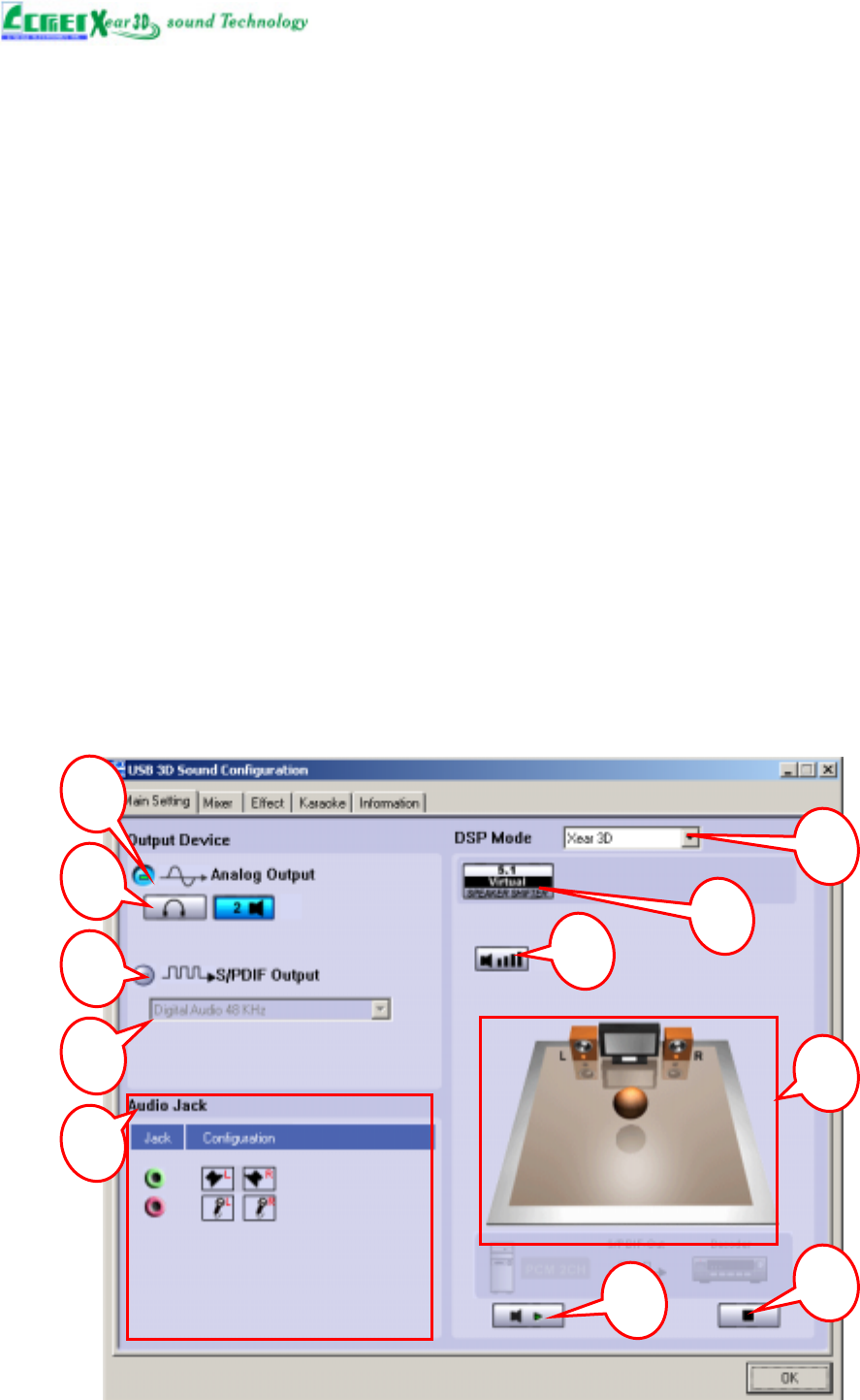 6.DSP Mode:pull down to select different DSP Mode. (Default support Xear 3D)