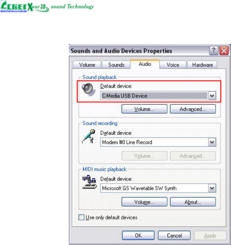 and Audio Devices”, choice “Audio” page then switch “Default device” to USB