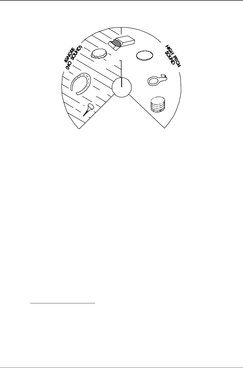 Disc 2 push select button with the thumb of the hand holding the metal detector.